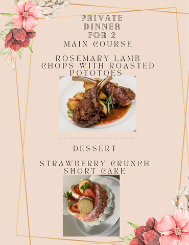 Pick one of the following: Rosemary lamb chops with roasted potatoes, lions mane gyro, herb potatoes ajvar hummus and yogurt(vegan) or reverse seared rib-eye with herb mash potatoes, madeira, caramelized onions and mushrooms.